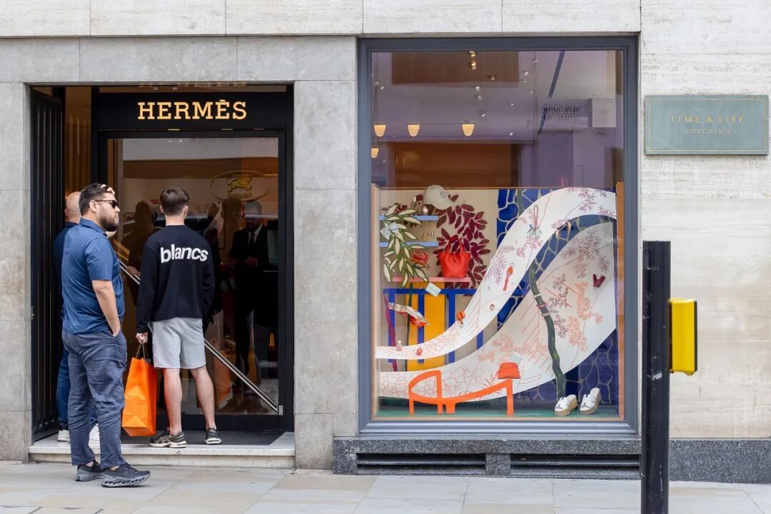 当地时间2025年7月30日,英国伦敦市中心,顾客在爱马仕国际(Hermes International SCA)奢侈品店外排队/图源:视觉中国